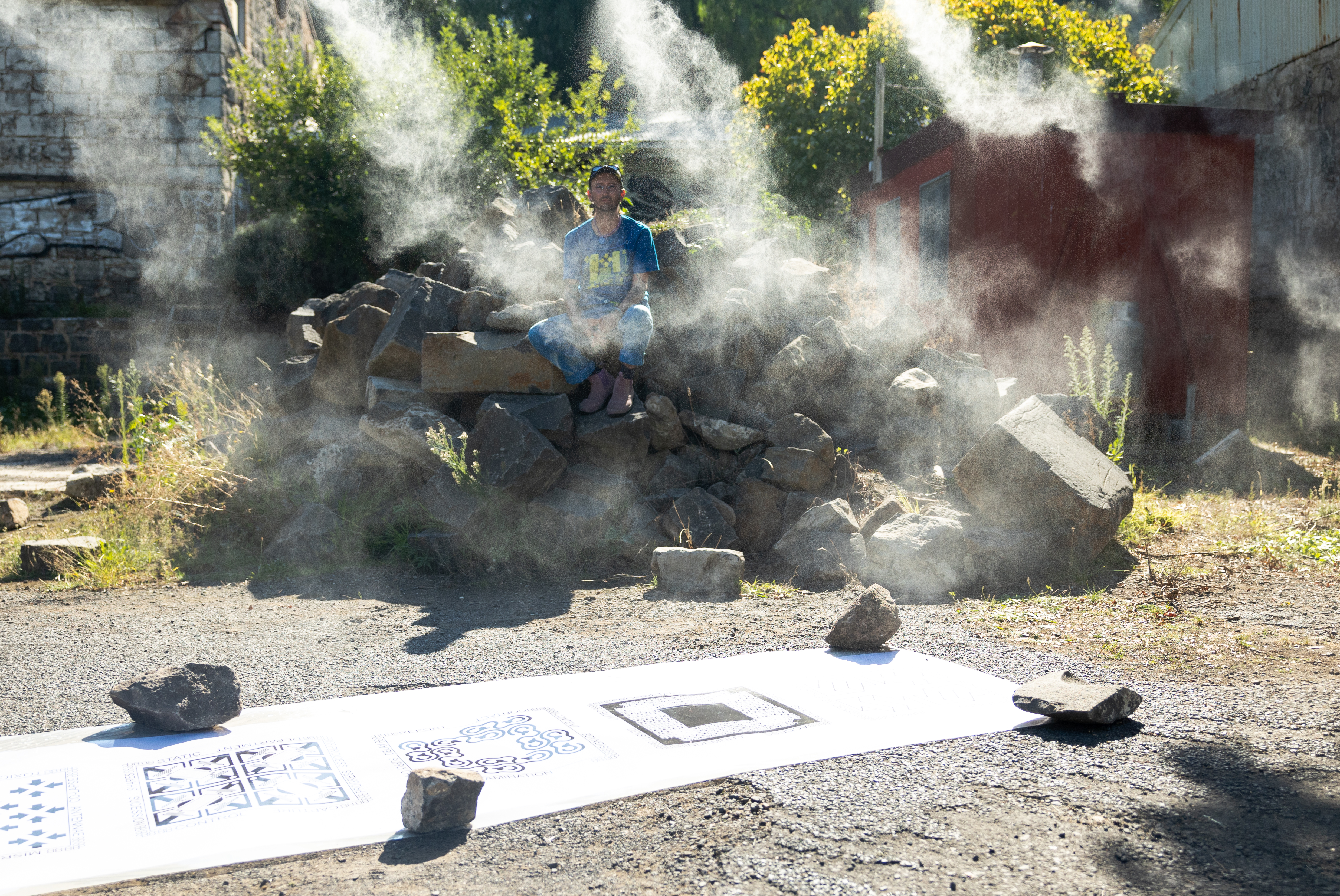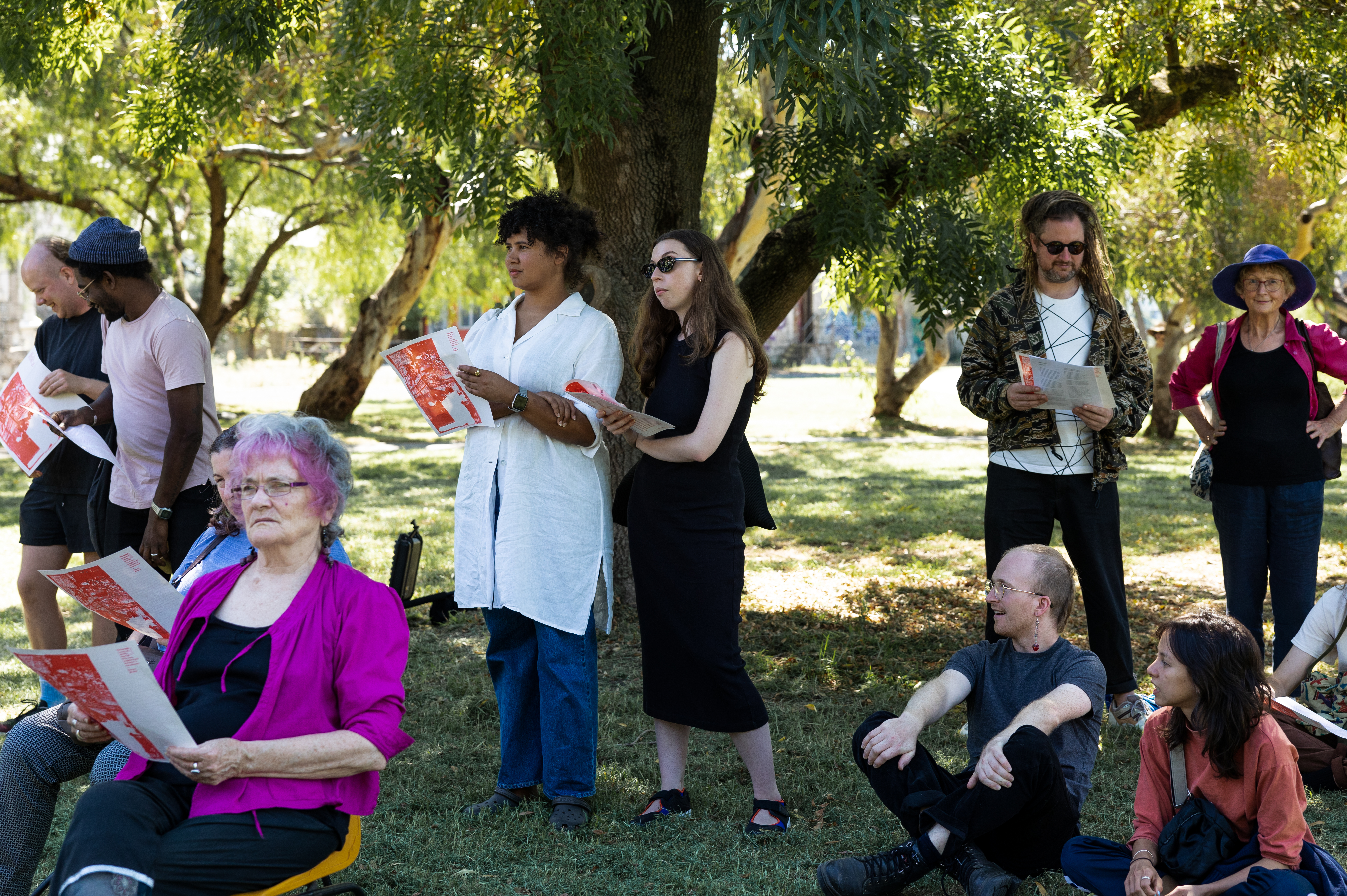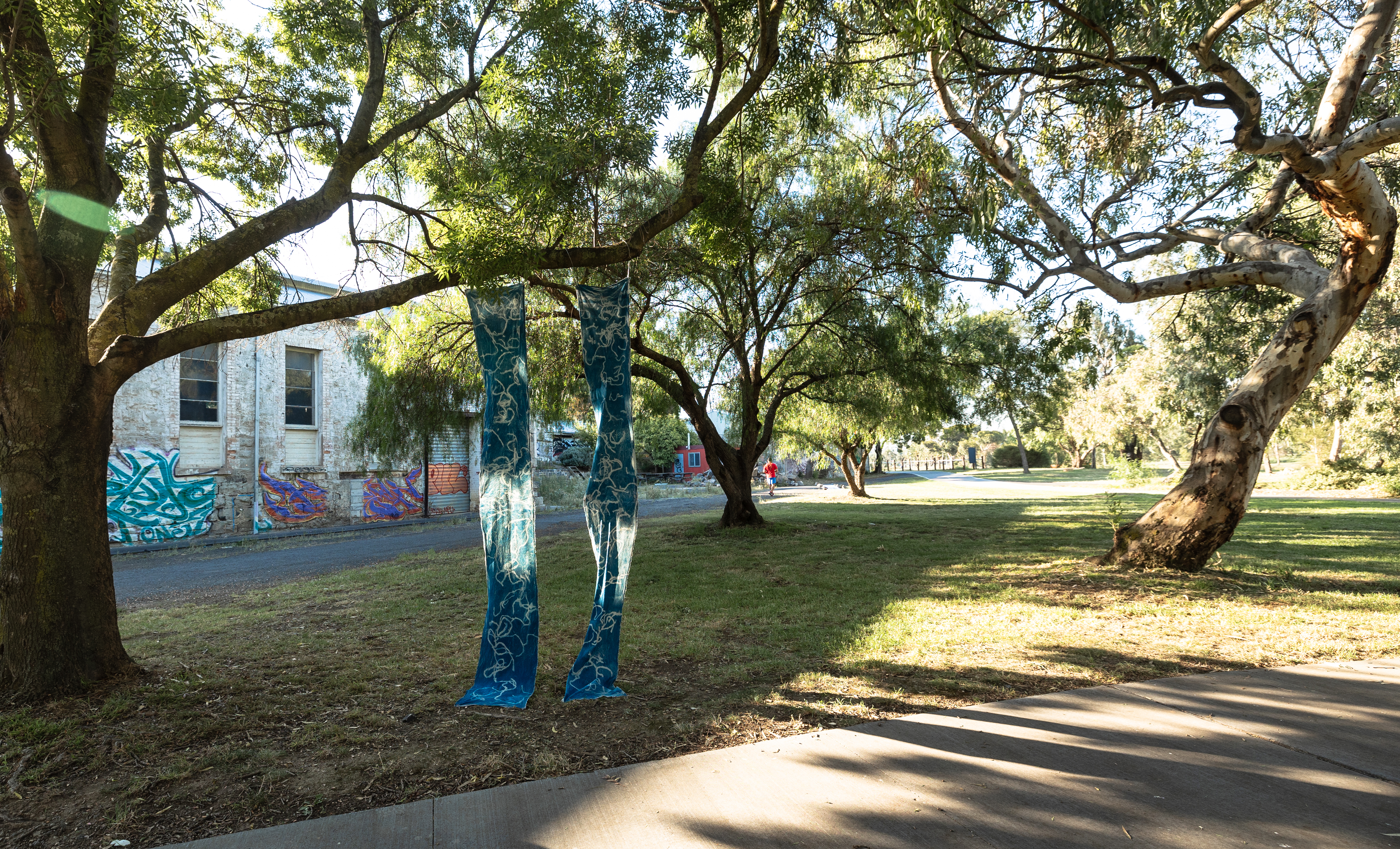 Initially planned for presentation in a heritage-listed blue stone building adjacent to the archive, the project underwent a significant conceptual and logistical re-imagining when the building was deemed structurally unsound by council. Adapting to this disruption, we developed a site-responsive model, situating the works along the Maribyrnong River and within surrounding parklands. This spatial shift foregrounded the environmental, social, and relational contexts in which the project was embedded, while intensifying the project’s engagement with questions of access, publicness, and contingency.